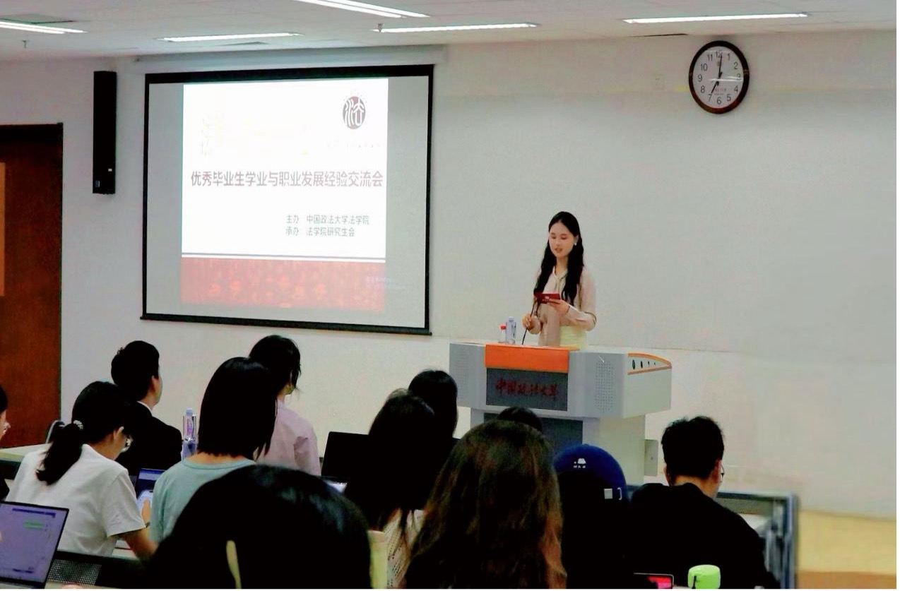 (法研通讯社 图/徐和、张潇月 文/葛文浩)为助力法学院研究生科学规划学业生涯、精准探索职业发展路径,2025年9月12日晚,由中国政法大学法学院主办、法学院研究生会承办的“法律人成长引航”系列活动之优秀毕业生学业与职业发展经验交流会在综合楼教室0423举行。活动特邀沈申琰、万恒有、阚瑞欣、汤浩四位法学院优秀毕业生代表担任分享嘉宾。他们结合自身求学与职业经历,从学业规划、求职技巧、行业洞察等多个维度为同学们带来经验分享。
