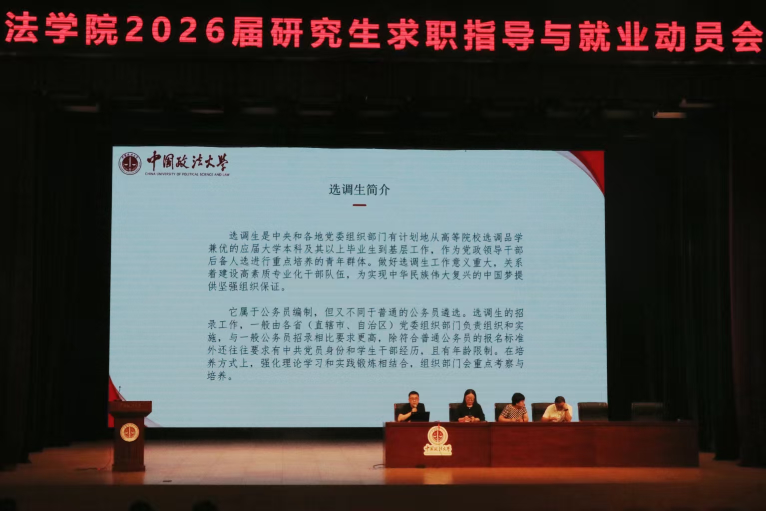 法学院2026届研究生求职指导与就业动员会圆满结束。法学院将以此次动员会为契机,持续完善就业工作体系,用心用情用力服务每一位毕业生,推动人才培养与社会需求精准对接,为全面依法治国输送更多德才兼备的高素质法治人才。
