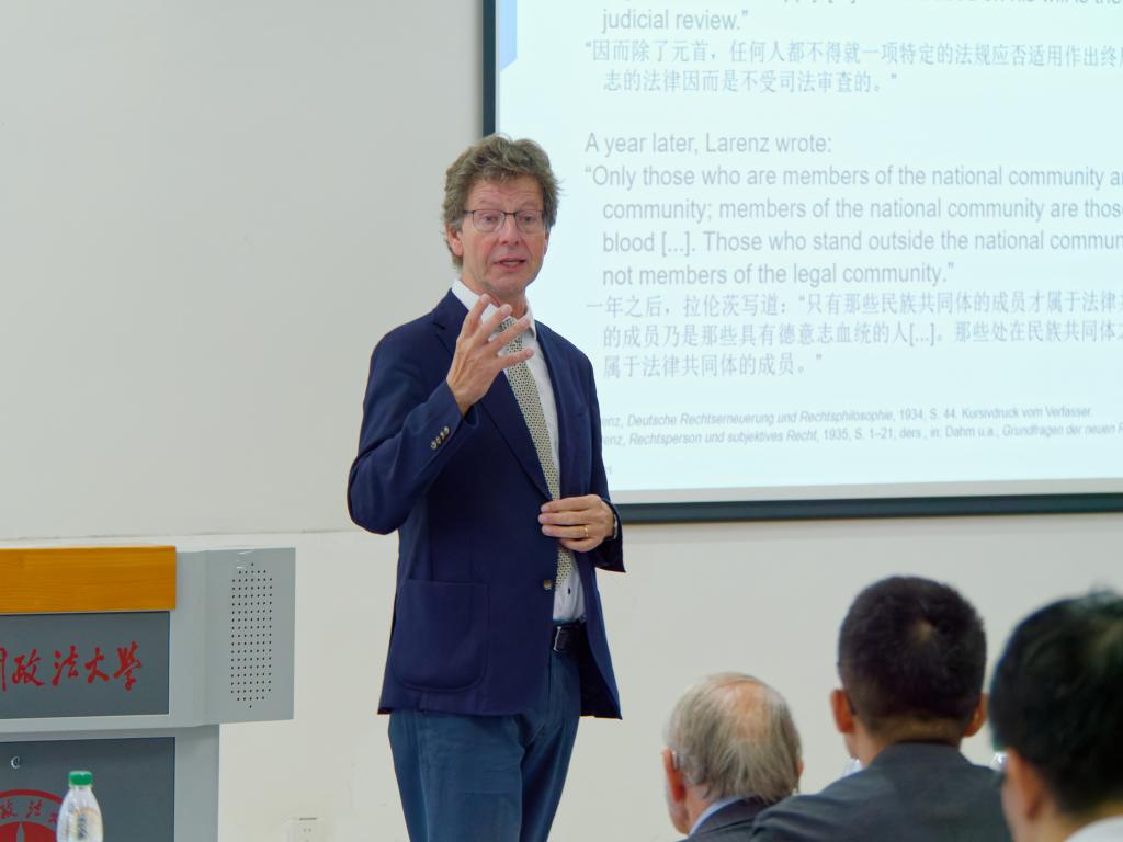 9月27日上午8:30,由中国政法大学法学院法理学研究所主办的“法理论衡”系列讲座第12期“法律思维与解释方法的中德对话”在中国政法大学海淀校区成功举办。本次讲座聚焦人工智能、法学方法论、体系解释与法教义学,展开了一场深入的中德学术交流。讲座采用线上与线下相结合的方式,吸引了近百名师生参与,现场学术氛围浓厚,互动热烈。