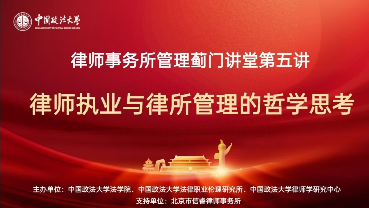 2025年10月17日,“律师事务所管理蓟门讲堂”第五讲在中国政法大学海淀校区图书综合楼会议厅召开。本次讲座由中国政法大学法学院、中国政法大学法律职业伦理研究所、中国政法大学律师学研究中心主办,北京市信睿律师事务所作为支持单位。本次讲堂由河北浩博律师事务所主任、第七届中华全国律师协会理事、河北省律师协会战略委主任宋振江主讲,中国政法大学法学院法律职业伦理研究所所长王进喜、中国政法大学法学院教授程滔、鲁东大学盈科法学院教授王玲、中国政法大学法学院教授刘晓兵、中国政法大学法律职业伦理研究所党支部书记孟婕进行与谈。会议由中国政法大学法学院法律职业伦理研究所副所长、副教授董林涛主持。