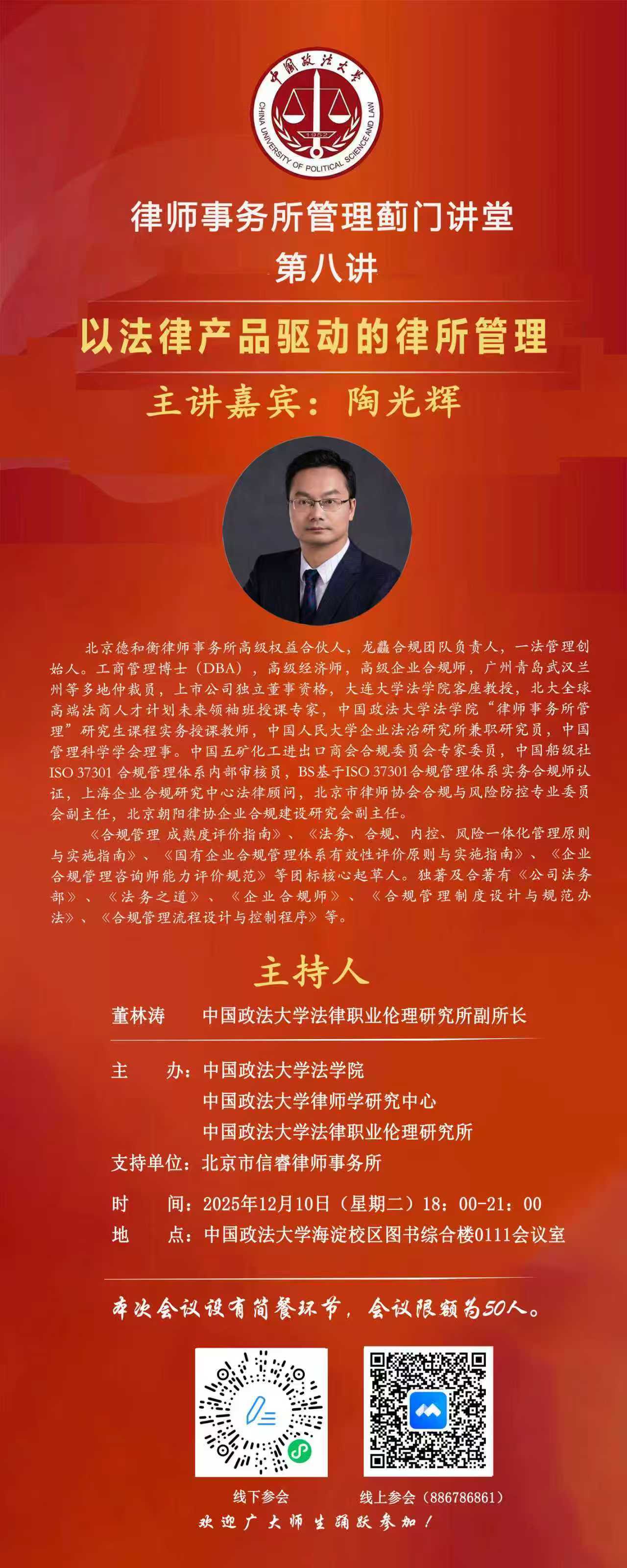 版权所有:中国政法大学法学院|学校邮箱:cupl@cupl.edu.cn | 网站备案 /许可证号:京ICP备05004635号-1 | 京公网安备:110402430029 | 建设维护 : 网络安全和信息化办公室