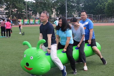 参赛的老师们兴致盎然,所参与的运动全程充满了趣味性和挑战性,老师们都乐在其中。此次趣味运动会调动了广大教职工运动的积极性,增进了教职工的交流,丰富了教职工文化生活,鼓励广大教职工在注重工作科研的同时也要关注身心健康,为祖国健康工作五十年。